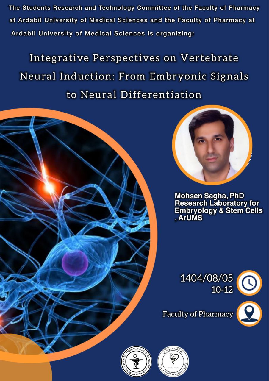 سخنران: جناب آقای دکتر محسن سقا عضو هیئت علمی،استاد تمام و مسئول آزمایشگاه تحقیقاتی جنینشناسی و سلولهای بنیادی – دانشگاه علوم پزشکی اردبیل